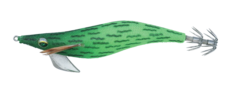 Available in rattling (RV model) and non-rattling versions the Emeraldas is 19.5 gram in weight, features a new designed premium hook, and is available in expansive array of squid loving colours.